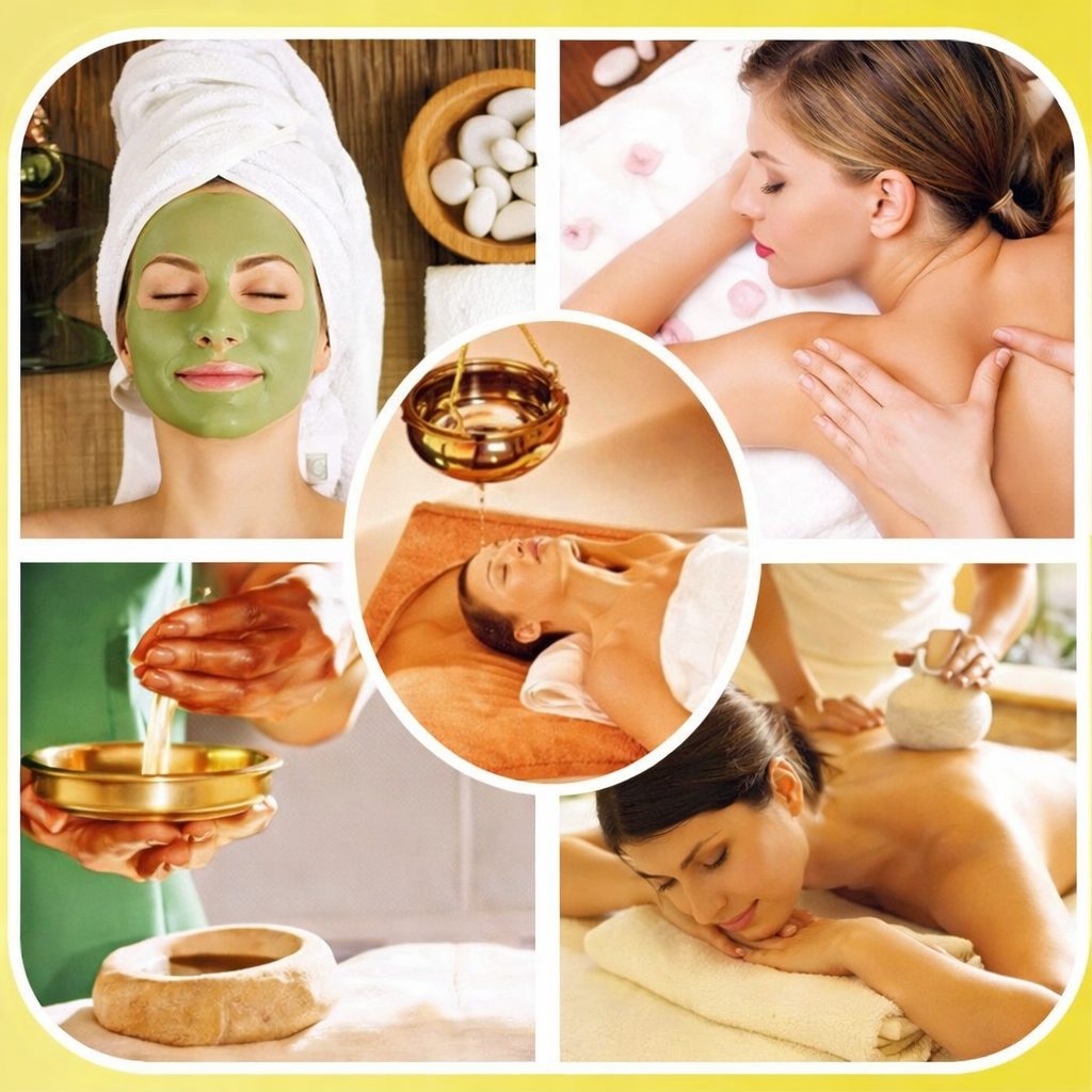 Ayurvedic therapies such as Janu Basti, Nasya, Gandusha–Kavala, Shirodhara, and Akshi Tarpana are holistic treatments aimed at restoring balance and promoting natural healing of the body and mind. Janu Basti is especially beneficial for knee and joint disorders, where warm medicated oil is retained over the knee to reduce pain, stiffness, and inflammation while improving joint strength and mobility. Nasya therapy involves the administration of herbal oils, ghee, or powders through the nasal passages and is considered highly effective for disorders of the head, neck, and sense organs, as the nose is regarded as the gateway to the head in Ayurveda. Gandusha and Kavala are therapeutic gargling procedures that help maintain oral hygiene, strengthen gums and teeth, and support throat health through the use of medicated liquids. Shirodhara is a deeply relaxing therapy in which a continuous stream of medicated liquid is gently poured over the forehead, helping to calm the nervous system, relieve stress, and promote mental clarity and emotional well-being. Akshi Tarpana is a specialized eye treatment that nourishes and strengthens the eyes by retaining medicated ghee over them, helping to reduce eye strain, dryness, and fatigue while supporting overall eye health.